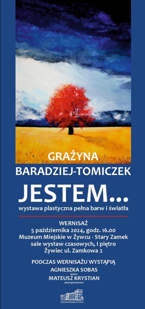 Już 5 października 2024 r. zapraszamy bardzo serdecznie do Muzeum Miejskiego w Żywcu na Wernisaż „Jestem…” Artystki Grażyny Baradziej – Tomiczek.